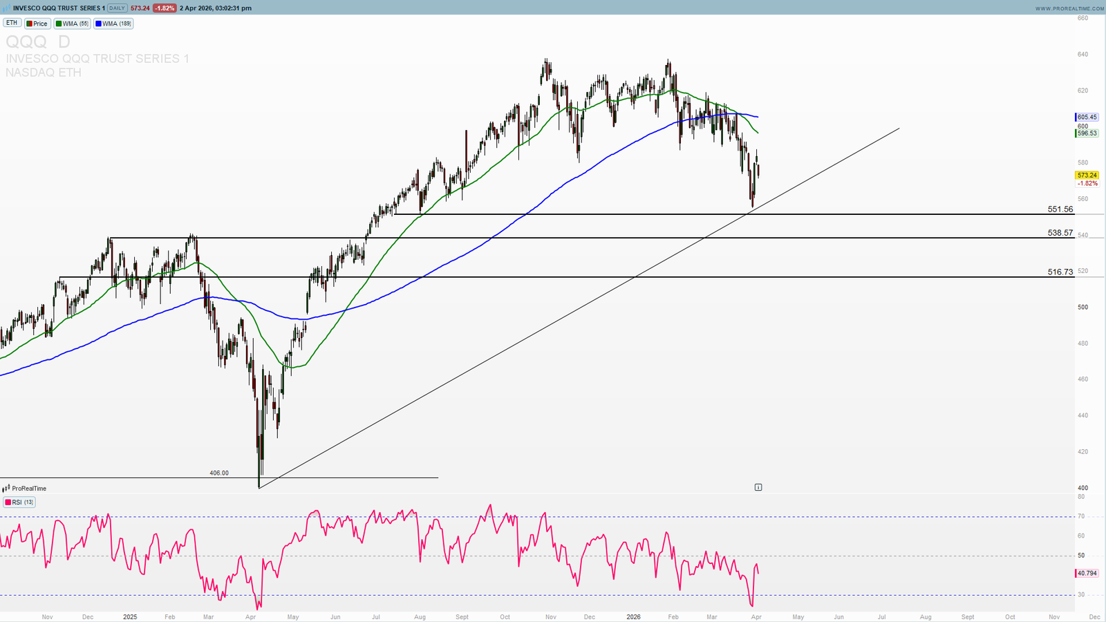 The current price around $560–$570 puts QQQ in a critical technical decision zone. The next few weeks will determine whether this is a buyable correction or the beginning of a deeper bear phase.