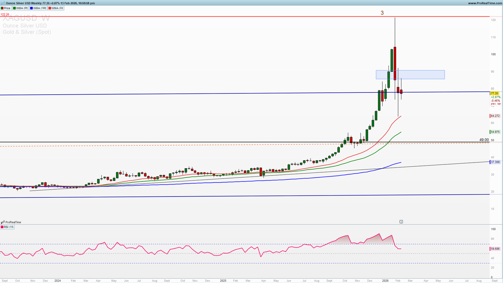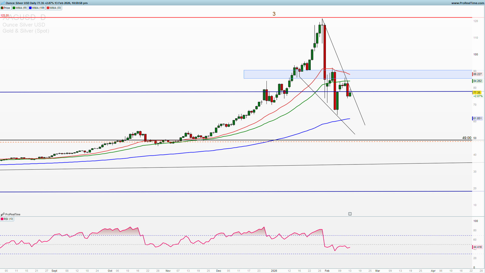 Markets experienced quick sharp selloffs mid-week, with gold and silver both posting sudden intraday losses — a sign of ongoing high volatility.